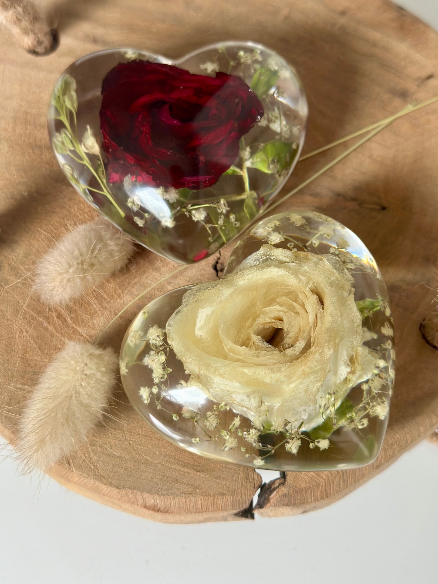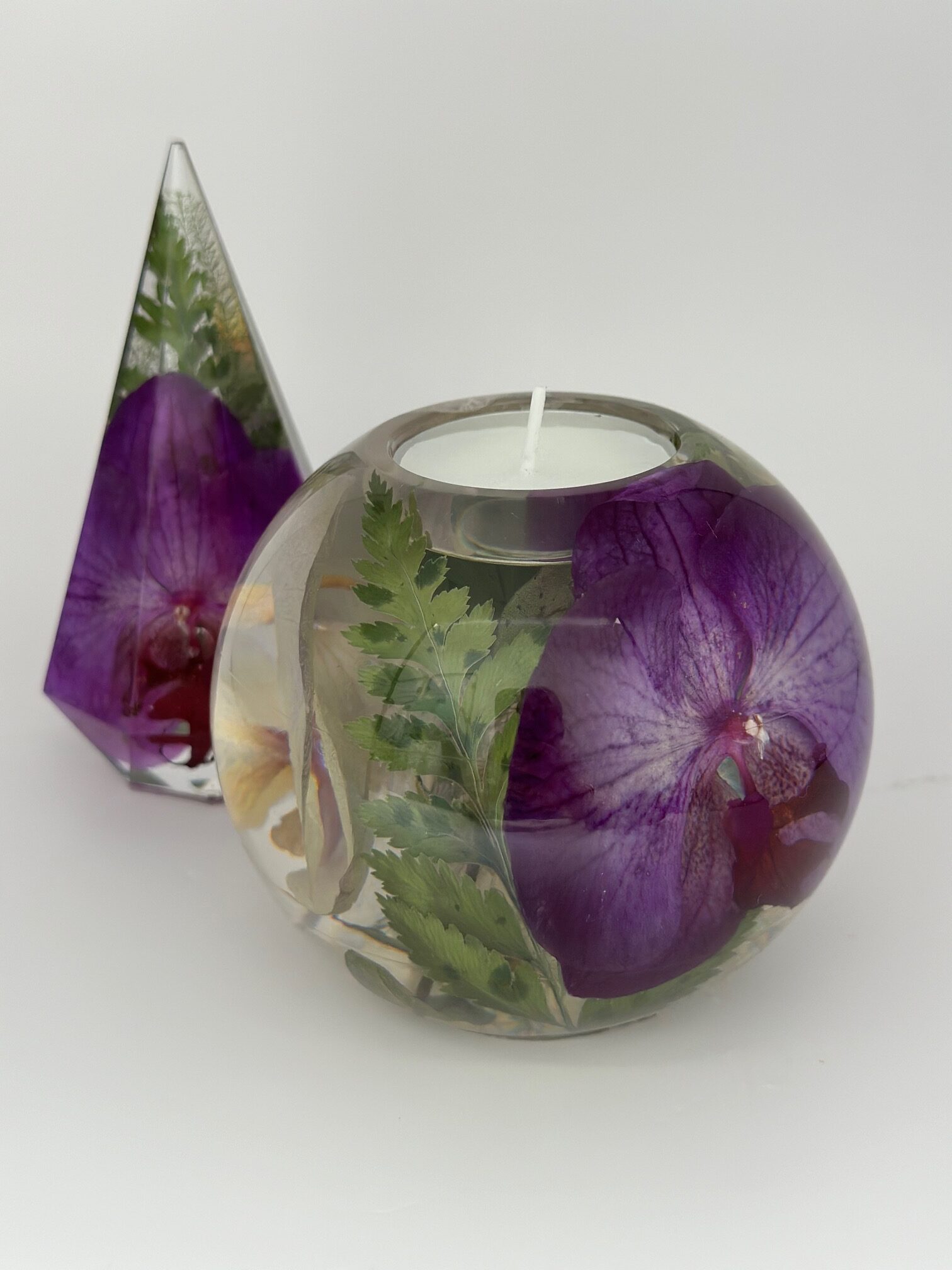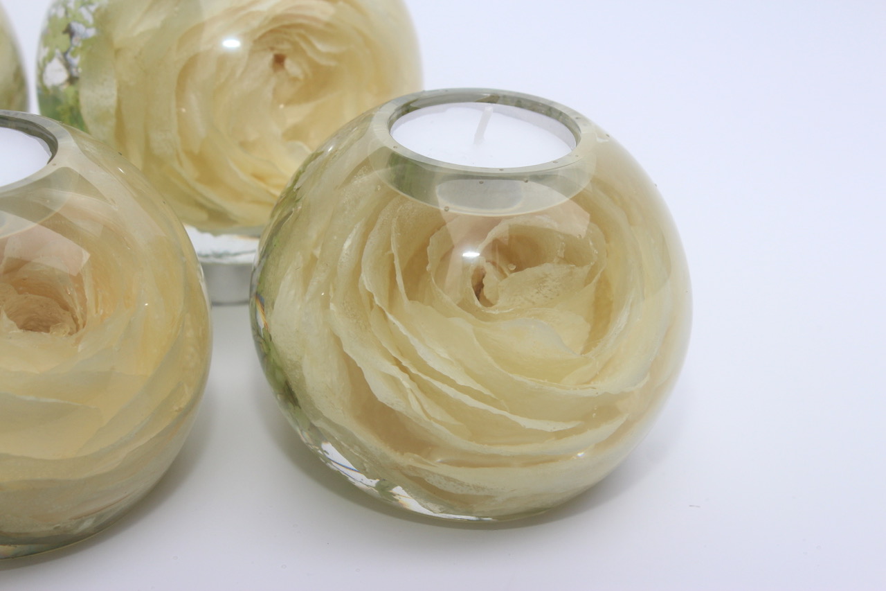 Wij kunnen er voor zorgen dat u deze dierbare bloemen voor altijd kunt behouden, als sieraad voor in huis of als toevoeging voor een gedenkplekje. Wij verwerken de bloemen in een epoxy giethars.